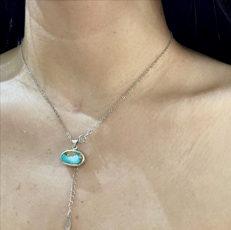آویز نقره دست ساز با نگین فیروزه نیشابور