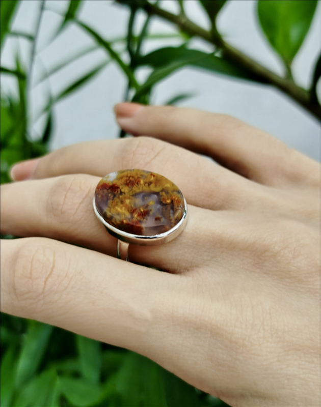انگشتر نقره دست ساز با نگین عقیق شجر